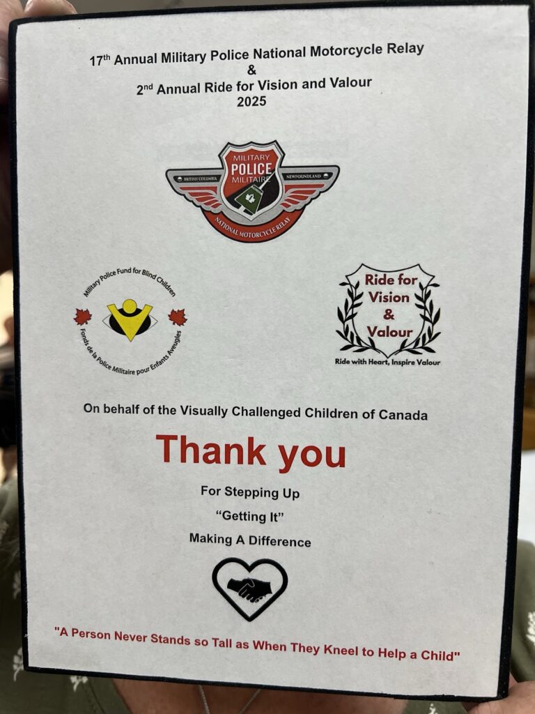 June 27, 2025 Presentation to the Military Police Blind Fund Motorcycle Ride